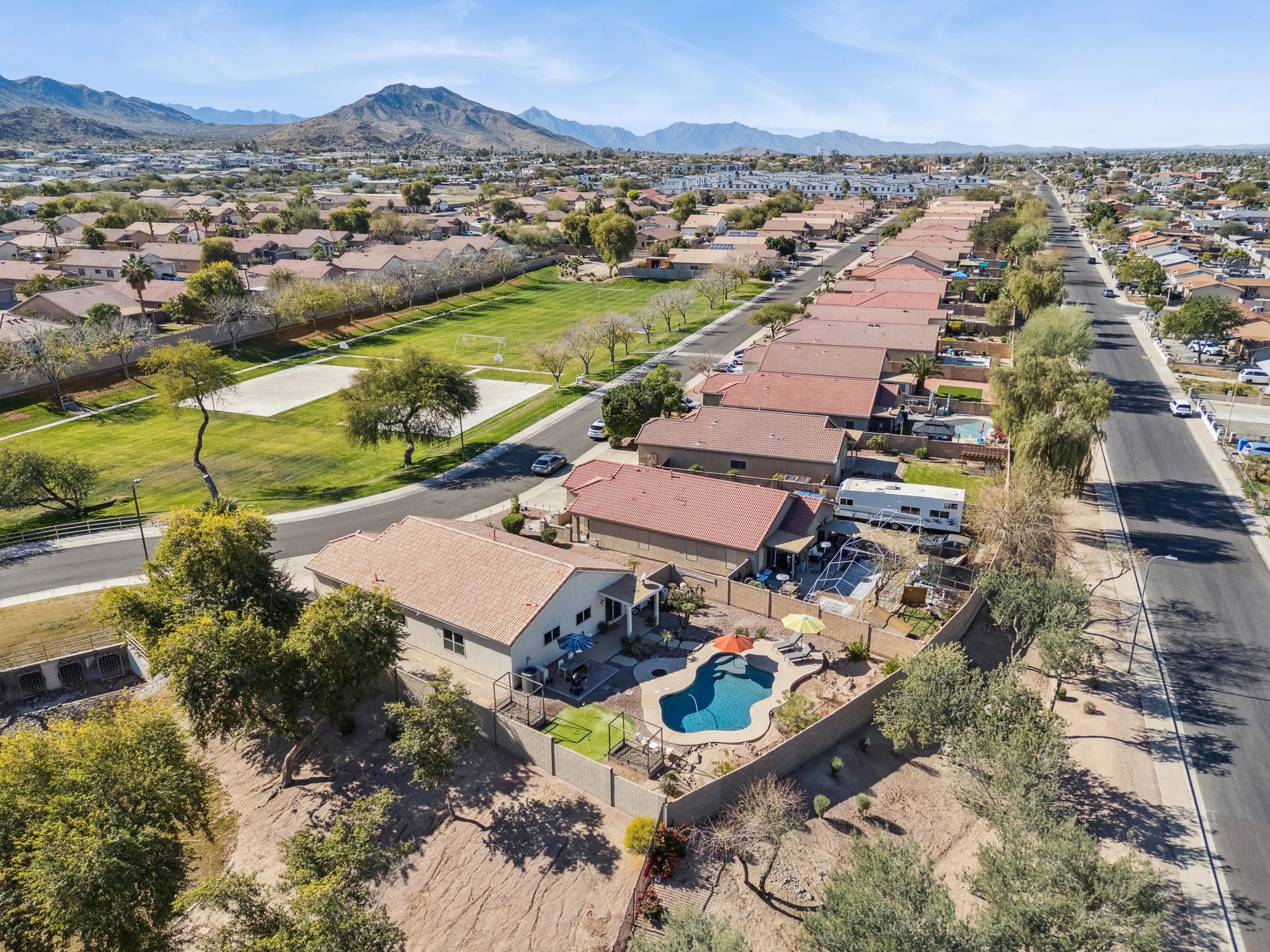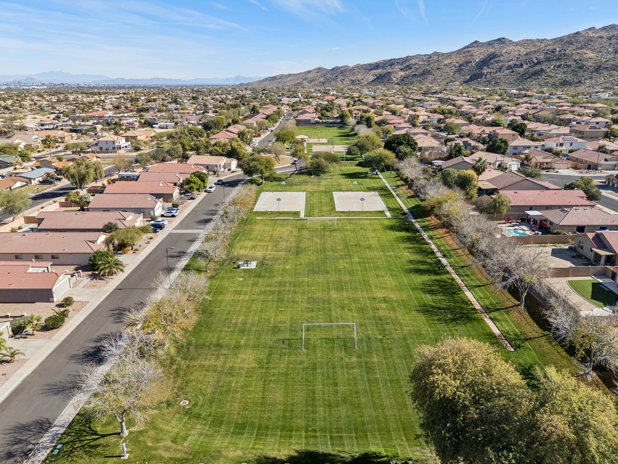 The park across the street features accessible paths, a children’s playground, soccer field, basketball & volleyball courts, or join in on one of the pickup pickleball games. If you hike, mountain bike, or simply enjoy being out in nature, you’ll love this amazing location with mountain views from the front and back yards, as well as from every window! South Mountain Park and Preserve is less than a mile, or a quick walk or bike ride, away and boasts over 100 miles of trails covering an expansive 16,000 acres. There’s a trail fit for every ability! Return from your outdoor activities to a refreshing dip in your sparkling pool or enjoy the rest of your huge backyard while relaxing by the fire pit, hitting golf balls on your putting green, or gardening in your custom garden beds. Close to shopping, local restaurants, activity centers, and gyms. Enjoy the quiet inside or out while also being only minutes from all major freeways, Tempe & ASU, the airport, and downtown. Don’t miss this really special home at a great price!
